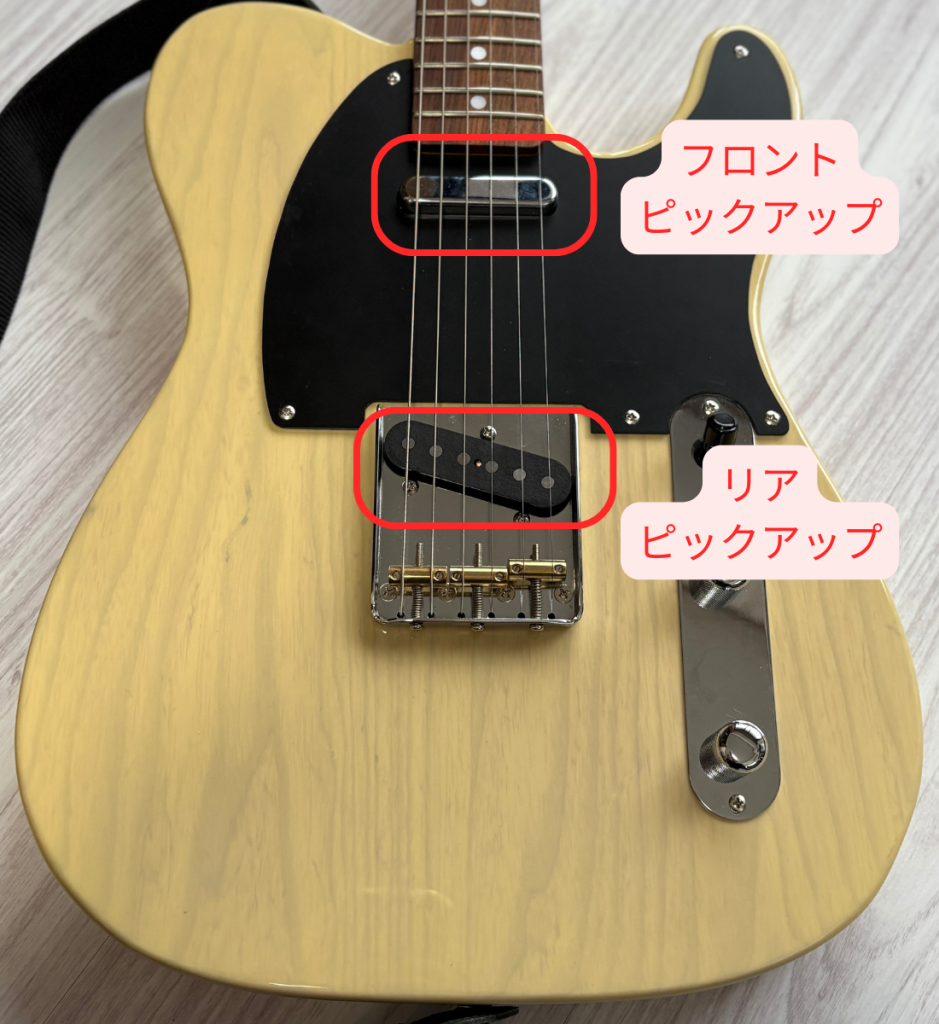 テレキャスターには2つのピックアップ(フロントとリア)が搭載されており、セレクターによってそれらを切り替えることができます。