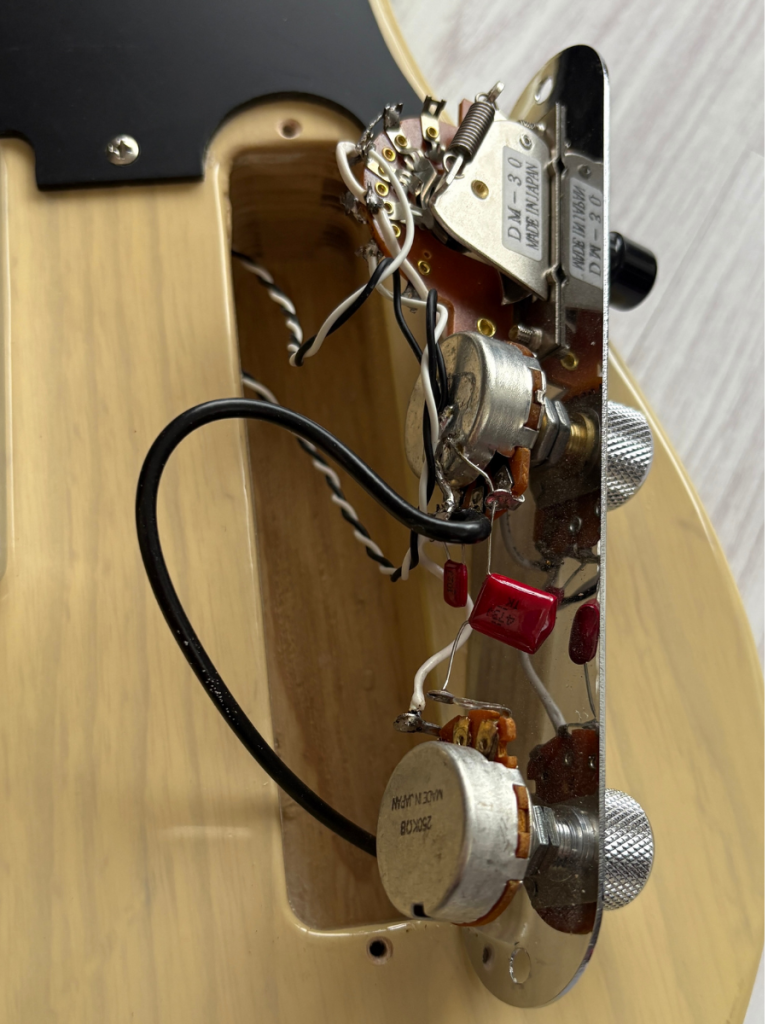 ここからは、実際にテレキャスターのコントロールプレートを開けて、中でどんなパーツがどう繋がっているのかを詳しく見ていきます。