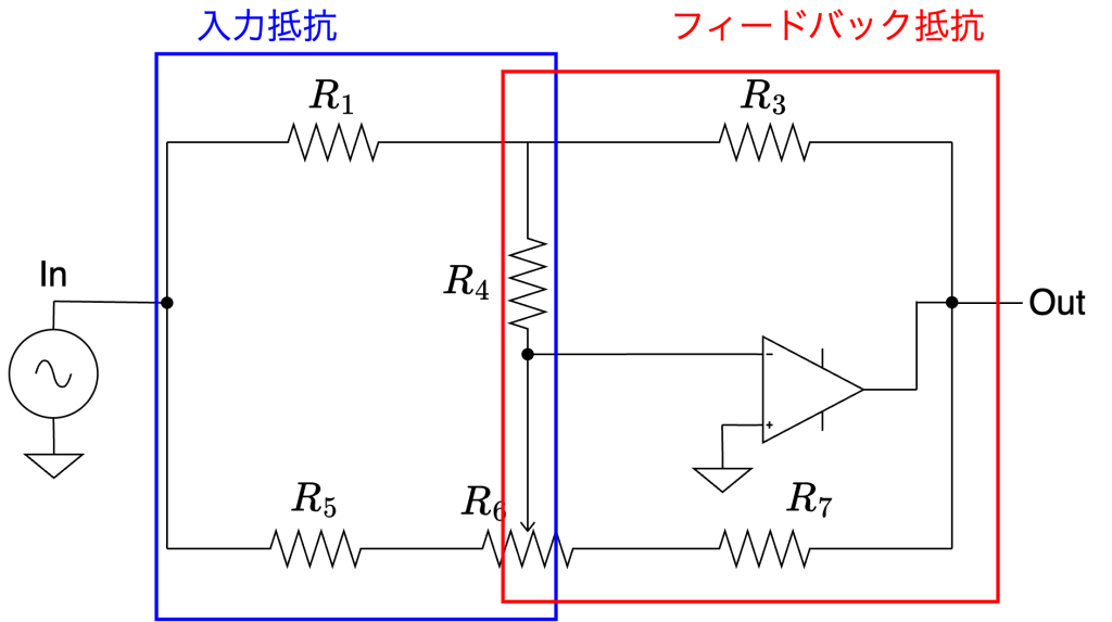 - 青色で囲った部分は、オペアンプの入力抵抗