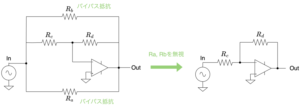 低域成分に注目して回路を簡略化すると、次のように読み替えることができます。