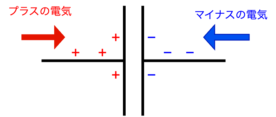 まるで磁石が引き合うように、プラスとマイナスの電気が互いに反応し合っているわけですね。